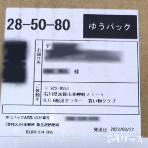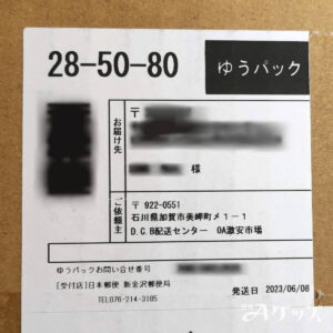 | 出荷元 | D.C.B配送センター(石川県) | 届先 | 日刊Aグッズ(千葉県) |
