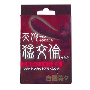 ねぇ、聞いて聞いて!「天狗猛交倫4粒」というアダルトグッズがあるんだって。このグッズにはペルー原産のマカとインド原産のムクナが入ってて、健康的なアミノ酸やビタミンがたっぷり入ってるんだって!好きな人とのセックスをより楽しくするための効果があるんだって。だけど、大事なのは、疲れを軽くしたり、エネルギーをアップさせたり、生殖力を促進するだけでなく、心を活性化し、喜びを感じられるような時間を過ごせるところなんだよね!こっそり使って、もっとパワフルなセックスを体験してほしいな♪サイズはW61xH95×D12って小さいから、カバンに入れて持ち歩くのに便利だよ!