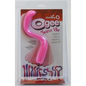 「オッゲー・トゥイスティー・バイブ ピンク」って言うんだけど、これはね、Gスポットがんばって開発できちゃうんだって!Gスポット専用のバイブだから、いっぱい使うとお股の奥深くまで刺激が届くよ!しかもさ、バイブを自分で曲げられるから、自分のお好みの形にフィットさせることができるんだよ!だから、どんな女性にも合うバイブってことなの!
