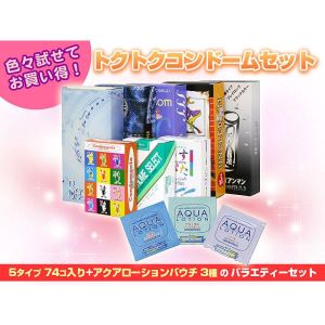 ジャパンメディカル トクトクコンドームセット【5タイプ74コ入り+アクアローションパウチ3種のバラエティーセット】の紹介