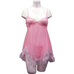 このベビードール、ピンク色でとっても可愛いんだよ!胸元には薄いレースの刺繍がしてあって、お花のワイヤーが入っているから、胸がちょっぴり盛れるんだ!しかも、そこにリボンが付いてるから、ドキドキするようなセクシーさもあるんだ!