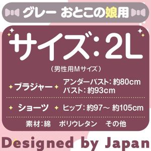 おとこの娘専用にデザインした本格的ブラ&ショーツセットおとこの娘のお洒落は下着から◇グレーのスポーツブラが魅せるパフォーマンス優しいフィット感で長時間付けても心地いい♪いやな締め付け感のないストレスフリー綿混素材で心地よい肌ざわりみんな大好きなグレーのスポブラおとこの娘用2LサイズDesigned by Japan◆サイズ2L(男性用Mサイズ)【ブラジャー】アンダーバスト:約80cm バスト:約93cm カップ:Bカップ【ショーツ】ヒップ:約97~約105cm素材:綿 ポリウレタン その他