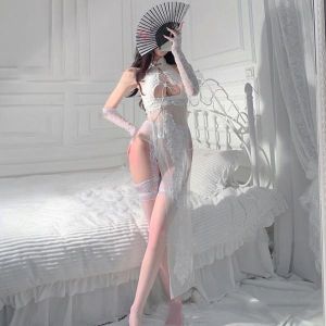 色気デザインと大胆なシースルーで大人な雰囲気を漂わせるチャイナ風ランジェリー。オープンな胸元と大きなスリットが印象的♪M<部分的にエナメルを使うことでエレガントな大人の女性を演出します。