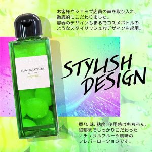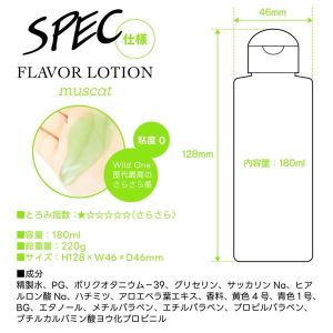 フルーティーな味と香りで新感覚プレイ! ワイルドワン女子が企画・開発した、女性のためのフレバーローション!安心安全の国内素材で、水のように「超さらさら」、フルーツみたいに美味しい水溶性ローションです!匂いが気になる日のフェムケアにも♪ナチュラルフルーツのさわやかな香りと風味の新開発フレバーローションです。粘度0.0という水のような「超さらさら」テクスチャをもたせ、最高級のスベりを実現しました。ベトつかないので、洗わずに拭き取れます!シンプルで透明感あふれる高級化粧品のようなボトルデザインで、もう置き場所にも困りません。「舐めて美味しい」「香りがいい」ことで、ラブタイムの幅がぐんと広がります。例えば…… ・「舌での愛撫は、刺激が強すぎる」という女性のために。 ・二人の時間をゆっくりと楽しむために。 ・デリケートゾーンの匂いが気になる日に。 ・口にふくんで温めておきやすいのも特長です。片手でも使いやすいワンタッチキャップ。気分がアガる全6種のフレバーで、自分自身がデザートになる感覚をお楽しみください。ヒアルロン酸、ハチミツ、アロエエキスを配合で、肌に優しい使い心地。※ポリアクリル酸Na、シリコン、砂糖は使用していません。●マスカット成分:精製水、PG、ポリクオタニウム-39、グリセリン、サッカリンNa、ヒアルロン酸Na、ハチミツ、アロエベラ葉エキス、香料、黄色4号、青色1号、BG、エタノール、メチルパラベン、エチルパラベン、プロピルパラベン、ブチルカルバミン酸ヨウ化プロピニル■とろみ指数:★☆☆☆☆☆(さらさら)■容量:180ml■総重量:220g■サイズ:H128×W46×D46mm