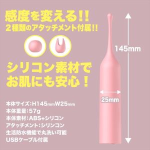 超ピンポイントシリコンヘッドローターのク●チョク。小さなヘッドだから集中した毎分12000回転の強振動を2種のシリコンヘッドを使い分けてお好みの場所で楽しんでください。振動パターンも10種搭載、本体重量57gと超軽量で生活防水タイプの為、丸洗い可能。