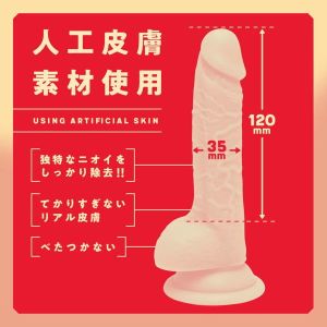 よりリアルを追求した、国内生産×国産人工皮膚素材のディルドができました。人工皮膚素材によって、てかりすぎないリアルな皮膚を再現しながら誰にでも安心して使えるようにひとつひとつ丁寧に作っています。ぷにっとやわらかやみつき感触×人工皮膚素材とリアルな造形でこだわりの仕上がり。棒部分の長さは120mm。先端部分の最大径は35mm。検査番号:2304040