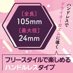 高級シリコン素材使用ハンドレスでドライオーガズムに導く滑らかなシリコン素材が生み出すソフトな質感個性的なフォルムが挿入感やフィット感を演出フリースタイルで楽しめるハンドルレスタイプ着衣でも使用できる的確にPス●ットを刺激全長:105mm最大経:24mm
