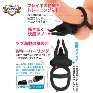 取り付けて、イカせながら鍛える!一挙両得型!新しいパワーリングの登場です。精悍な黒い牡牛を想わせるデザイン。2つのリングで根○からしっかりキープ!2本の「掻き」ツノ&「舐め」舌と、取り外しできるパワーローターの組み合わせが、本人とパートナー双方に、極上の快感を与えます!!■使用電池:LR41×3ヶ