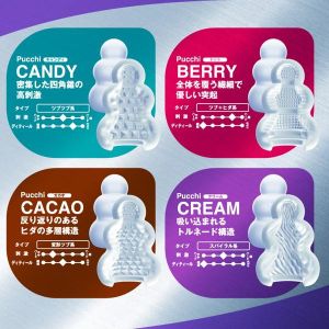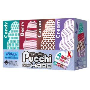 ローション不要素材を使った大人気プッチにかねてから要望の声が多かったハードタイプが登場。冴える刺激、弾ける触感。さらにくっきりした刺激。プッチに導入されている「HD成形」と「ハード素材」が組み合わさり最高レベルの刺激!さらにパワフルな反発力。ハード素材による反発力で弾ける様な触感。ストロークするたびに手まで伝わる震動は圧巻。素材には水だけでねっとり潤う魔法のような「プラスウェッチ素材」を採用。スイーツBOXはベリー・クリーム・キャンディ・カカオのセットです。