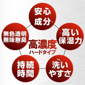 液垂れ・糸引きなし、キレの良さと高い潤滑力、持続力を兼ね備えた高濃度ローション。垂らした箇所にしっかり留まり液垂れしない、ハードタイプのローションです。垂れない程ハードですが、良く伸びるうえに潤滑力も持続力も高いので、頻繁な継ぎ足しは必要ありません。大量に使っても周囲を汚すことが無く、安心して使用できます。逆さにしても垂れてこないのでオナホールとの相性は抜群。ハードタイプローションならではの粘り強さで、オナホールの刺激をくっきりと際立たせます。水で簡単に洗い流せるので、使用後の後始末も楽ちんです。