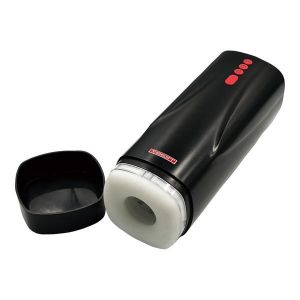 新しいオナホがあるよ!電源ONすると、吸う力と振動で亀頭を責めるんだ。強すぎたら、エアリリースボタンで力を抜けるよ。中についてるバイブはイボの付いた柔らかいシリコンでできていて、優しくするのも強くするのも自由だよ。ずっと吸いつづけられるようになっているよ。使う前にローションを塗ってね。パッキンは取り外して洗えるよ。動くために電池が2本必要(付属品ではないよ)。