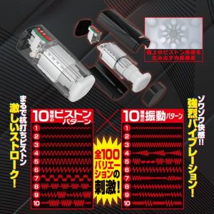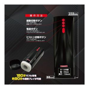 ピストンが大暴れする、最強の電動オナホールが新登場!快感を最優先した「ピストン×バイブレーション」ギミックを搭載!「ピストン」は、まるで杭打ちピストンのような激しいストローク!本体内部で伸縮するインナーピストンタイプなので、ホールは飛び出さず、持ったそのままでピストンを楽しめます。さらに、ピストンのアクションパターンは10種類!焦らすようなスロー快感から激しいハードアタックまで、お好みプレイを選べます!「バイブレーション」は、身悶えするゾワゾワ振動!バイブレーションパターンも10種類!ピストンとバイブレーションを合わせればマリアージュな気持ち良さ!インナーホールはピストン快感と相性の良い大粒突起タイプ。タフなパワーの充電式バッテリー、最新のUSB TYPE-C仕様、ピストンとバイブレーションはそれぞれ独立使用可能、保管しやすいフタ付き。快感が大暴れする、ランペイジなメンズマシーン!