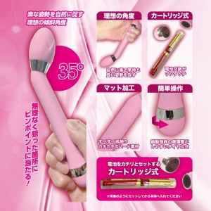この角度が凄い!セルフプレジャーにピッタリ!おじぎをするように頭部が曲がったタイプのスティックトイが新登場!全長19センチのセルフプレジャー向けのスティックローター。傾斜度35度、狙った箇所に当てやすいように頭部の角度を曲げました。この傾斜度が、無理な体勢を強いらずに、自然に楽で気持ち良い姿勢へ促すことでしょう!さらに、振動を強弱調整しやすいダイヤル式コントローラー。電池をセットしやすい、カートリッジ式。使いやすいサイズとなる、全長19センチに、頭部直径3cm。握りやすい、スティック部直径2センチ。軽くて持ちやすい、重さ62グラム。すべすべと肌ざわり良いマット表面加工。貴方自身をもっと輝かせる、セルフなプレジャーを応援するスティックローター!