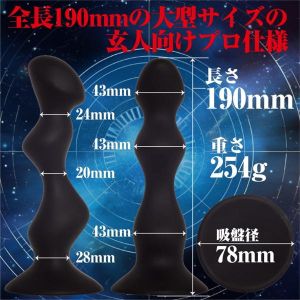 快感ボール内蔵の高品質シリコン製のア●ルディルドの登場です。全長190mmの大型サイズで玄人向けのプロ仕様です。表面は高級シリコンのすべすべの肌触りで、内部には小刻みに動く「快感ボール」が3つ内蔵されており、運動時の小刻みな刺激で新感覚を味わえます。3段階のふくらみが圧迫感をしっかりと演出。圧倒的サイズ感で他の追随を許しません。ア●ル開発! 前●腺開発! ドライオーガズム! パートナーと! 外出のお供に!などいろいろな使い方が出来ます。特にお散歩は内部の快感ボールが振動し、新しい楽しみ方ができることでしょう。表面の高品質シリコンはすべすべの肌触りで気持ちよさを感じる質感になってます。強力吸盤の台座付きで床、壁などに貼り付けてハンズフリーで様々な楽しみを実現できます。※本商品はジョークグッズですので、その他の目的でご使用された場合の責任は一切負いません。■当商品はジョークグッズであり、それ以外の目的でご使用された場合は責任を負いかねます。