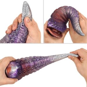 吸盤付きのタコ足に犯●れる快感極太な触手が迫る驚異のディルドファンタジー世界からやってきたような、インパクト1000%の超大型ディルドシリーズです。バリエーションは全6種類で、うち2種は電動モデル。より幅広いユーザーニーズに対応し、見た目以上の実用性を備えています。とにもかくにも、この精巧なフィギュアみたいな迫力が圧倒的。ゲームや映画などに登場するモンスターのような造型が素晴らしく、着色も非常に美しい仕上がりです。そんなディスプレイ要素の高さもさることながら、本作は素材特性も超優秀。ソフトシリコン製でモチモチと柔らかく、本物ペ●スに近いハリと硬度を備えています。サイズ的な習熟度さえクリアしていれば、その心地よい弾力と質感によって、かなりの快感が得られます。こちらの’’オクトパス’’は、見たまんまの超極太なタコ足です。吸盤まで再現されたディテールがとてもリアルで、触手系に興奮する方にはピッタリ。先端こそ細いですが、波打つようにカーブしながらどんどん太くなっていくため、根元まで飲み込むにはかなりの習熟度を必要とします。どうぞムリのない範囲でお楽しみください。