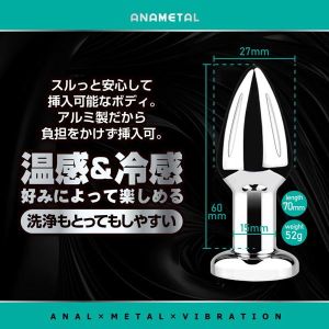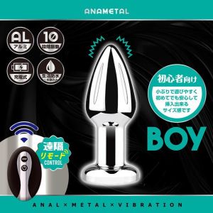 遠隔リモートプレイが可能なア○ル用メタルプラグ。高品質のアルミニウム製で、表面がつるつる滑らか。挿入感もとっても心地良く、扱いやすさも抜群。冷水や温水につけて、時にはひんやり、時には温かく、好みに合わせて楽しめます。※温冷機能ではございません。遠隔式なので、1人でも2人でも様々な遊び方が可能です。【BOY特徴】小ぶりで遊びやすく、初めてでも安心して挿入出来るサイズ。初心者はまずこれ。■10段階振動■遠隔操作(操作飛距離8m)*■生活防水 ※本体のみ。リモコンは防水ではありません。■USB充電式 ※本体のみ。リモコンは電池式です。(充電時間:約40分/連続使用時間:約60分)**使用状況や環境により変動する場合があります。