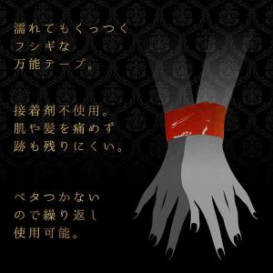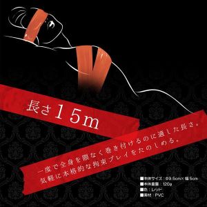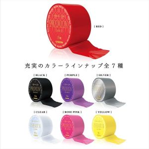SMプレイの必須アイテム【ボンデージテープ】!気分で色を変えたいお客様の声にお応えし、女体を彩る業界最多の7色をラインナップ!ノリを使わない万能テープで服や髪・肌を傷めず、お手軽カンタン拘束プレイ!誰でもSMプレイを楽しめる今、とりわけ注目を浴びているのが、この幅広な拘束テープ。使用感はまるで「厚手の食品用ラップフィルム」。引っ張っても破れない強度なのに、肌にやさしいソフト素材で、プレイの跡がほとんど残りません。「手錠や手枷は、本格的すぎてちょっと……」な初心者の方でも、すぐに本格的な拘束プレイをお楽しみいただけます。●濡れてもくっつく、不思議な万能テープ科学の力でテープ同士が吸着。ベタつかないので片付けも簡単。髪や肌、繊細なグッズやテーブルにも安心して使えます。静電気に頼らないので、汗やローションで濡れた体でも、しっかり拘束を楽しめちゃうんです。●バリエーション7色ワイルドワンのお客さまのご要望に応え、従来からのSM基本色(レッド・ブラック・パープル)と合わせ、業界最多の7色をラインナップ。気分やプレイスタイルで自由多彩にプレイが広がります。特にこだわり派の多いクリア(透明)は、芯が透けて見えるほどピュアな透明感を実現。【レッド】男女をたかぶらせ、性欲を強める攻撃色のレッド。赤・黒のどちらのグッズにも映える万能色です。●テープ長:15m●本体サイズ:φ95mm×W50mm●総重量:120g●素材:PVC