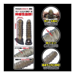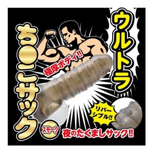 夜もがんばリング、で大人気のメンズパワーアップアイテム「ち●こリング」シリーズに、ウルトラでマックスな極厚サックが新登場!今度の「ち●こサック」は、フル装着する超メンズサック!肉厚1~6ミリからなる極厚ボディが、貴男をウルトラなメンズにパワーアップさせる!パートナーを思うからこその、大きくて太いストロングスタイルなサックなのです!ぷにぷにっとした柔らかなTPE(エラストマー)素材は、ぐい~んとよく伸びる高伸縮性!サイズ問わずでどんな大きさでもしっかりフィット、抜群の装着感&締付感!外側には、アクセントになる横縞6本ライン突起!内側には360度ぐるっと配置された丸イボ突起!貴男もパートナーも快感を味わえる両面仕様、くわえて裏返しても使えるリバーシブル設計!「スモーク」は、男らしさが引き立つ半透明黒色!この大きくて太い極厚サックで、ウルトラでマックスなメンズにビルドアップ!みなぎるパワー!