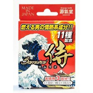 厳選11種のパワー素材をバランス配合!そしてメイドインジャパンの底力!!マカ、カンカ、冬虫夏草、トンカットアリ、エゾウコギなどのインバウンドでも着目されている植物原料に最後にミネラル分として亜鉛を配合し、バランスを整えました。パワー不足な方、仕事や遊びやスポーツでも「今日は頑張らないと!」という日に限って調子の悪い方、そんな方は是非、「侍シリーズ」をお試しください。「1回分の黒」「3回分の赤」「10回分の白」と視認性も抜群で、昨今ではインバウンド需要の回復に伴い、更にご好評頂いております。目安として1日4粒をパフォーマンスを発揮したい約2時間前に飲用下さい。