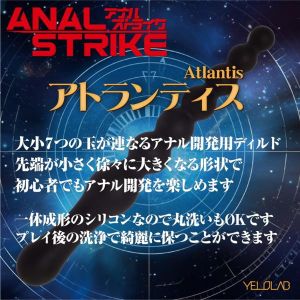 手触りが絹のように滑らかな高品質プレミアムシリコン製【ア●ルストライクシリーズ】アトランティスの登場です。全長240mmで大小7つの玉が連なるアナル開発用ディルド。先端が小さく徐々に大きくなる形状は自分やパートナーの限界を知る為の形状で、初心者から上級者までアナル開発を楽しむことができます。ボール間の滑らかな継ぎ目はしっかりとローションをキープする滑らかさ。初心者でもスムーズな挿入をサポートし、手持ちグリップでしっかりと満足させます。最後まで挿入して少しづつ引き抜く時の刺激は新しい絶頂体験を味わえます。一体成型の高品質プレミアムシリコンなので丸洗いもOKです。プレイ後の洗浄で綺麗に保つことができます。初心者から玄人まで幅広くお楽しみいただけます。※本商品はジョークグッズですので、その他の目的でご使用された場合の責任は一切負いません。■当商品はジョークグッズであり、それ以外の目的でご使用された場合は責任を負いかねます。