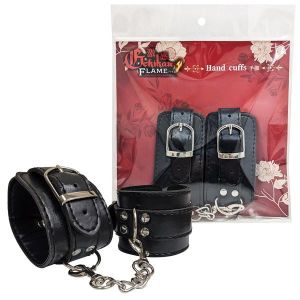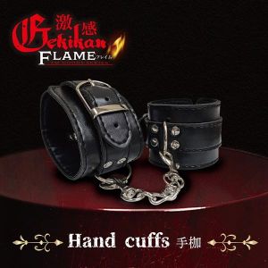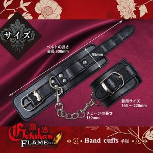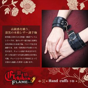 高級感を纏う、漆黒の本格レザー調手枷屈辱感と責められる快感…激感フレイムシリーズの、黒のレザー風生地に光輝な金具が映える本格手枷。ベルトで長さを調節でき、女性・男性問わずお使いいただけます。チェーンは取り外せますので、ポール等に括りつける時も簡単に付け替え可能。チェーンとベルトの拘束によって日常から逸脱した世界へと誘います。