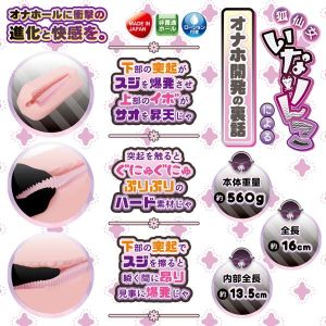 狐仙女による新たな刺客が届いた!!それが「スジ爆発!裏なめ子」である。いなりんこは妖術と神力を使い分ける稀有な狐仙女の次女。スケベな事が大好きで男性向け性的竹輪を研究する。今回いなりんこは「スジ爆発」というコンセプトを得て新たな境地に達する。ふわふわ続きだったアウターに、ほんの少しのプリプリ感をミックス。柔らかいだけじゃなくリアルな締まりを再現する事に成功。ヒダとイボの鉄板構造で既に満足度は120%を超える。そこにスジが爆発するほどの突起を配置したら… もちろんスジ爆発の完成だ。ハード素材で確かな存在感を放つ、恐るべきスジ攻め突起を感じてほしい。もうダメと言っても無理やりイカせるほど、それは強烈な快感がおそってくるだろう。「スジもサオも快感も全力で爆発じゃ!」