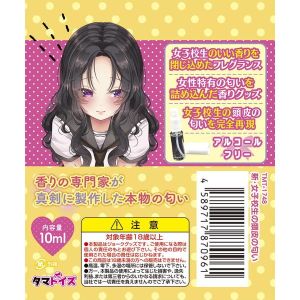 新製法エタノールフリーで女子○生のフェロモンが混ざった香り。思春期の想いを呼び覚ます匂いグッツ。女子○生とのすれ違いで制服の匂いを感じる。女性の特有の匂いを詰め込んだ香りで感覚が新たな次元へ。10mlの内容量で、吹き付けて時間が経つとリアルな匂いが楽しめる。専門家が真剣に製作した本物。取扱注意!