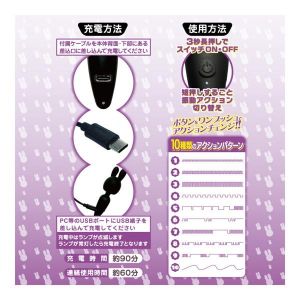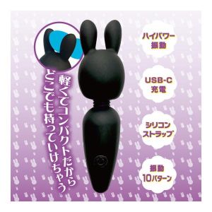 カワイイ見た目でとってもパワフル!USB-C対応の充電式ミニ電マが新登場!全長104ミリの小さくて可愛いミニサイズの電マです。小さなボディに、高出力の充電バッテリーとハイパワーな振動モーターを内蔵しました。アクションパターンは10種類もありますので、お好みの振動を見付けましょう!さらに、充電方法に最新となるUSB-C方式対応。お使いのスマホ充電環境で、そのままで充電できます。乾電池要らずなのでコスパも抜群。不意な落下を防ぐ、オシャレなシリコン製ストラップ付き。スベスベで肌ざわりの良い、ヘッド部シリコン素材。軽いからどこでも持っていける、重さ36グラム。自由に曲がる、フレキシブルネック。充電時間約90分で、連続稼働約60分。「ラビット」は、可愛いウサ耳が特徴的なラブリーデザイン。はさんで、つまんで、さしこめちゃう♪初めての方でも大満足の、チャーミングでラブリーなミニ電マ!