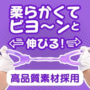 柔らかくてビヨーンと伸びる素材のソフトSMにピッタリの手錠型手枷です。伸縮性のある素材だから装着するのも外すのもとっても簡単です。よく伸びるので手枷としてだけではなく、足枷としてもご使用いただけます。(※無理のない範囲でご使用ください)。お気軽にSM気分を楽しめる可愛い見た目のクリア素材TPE手錠。