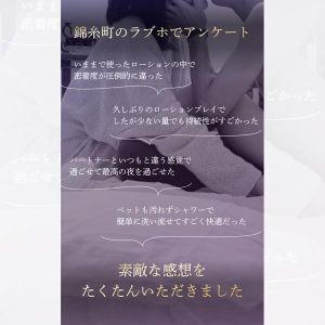 「ローションプレイをもっと身近に!!」全ての人がローションプライを楽しめる画期的な商品を開発。レシピにこだわり快適性をとことん考えた使いやすいローション。「ワンプッシュ」ボトルタイプでワンプッシュでちょうど良い適量が出ます。ベットの横に置いても違和感の無いおしゃれなデザインでいつでも快適に使用出来ます。オナホールに使っても最適な成分で心地よさが体中に広がり相性抜群なローションです。洗い流しも楽に出来て使った後の片付けも快適。シャワーで簡単に洗い流せます。安心安全の日本製、池袋の老舗メーカーが日本トップクラスのアダルトバイヤーと合同で商品開発!使いやすさにとことんこだわったローション。