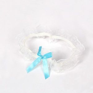 純白のレースに淡いブルーの小さなリボン。清楚な印象のキャットガーターです。ランジェリーやコスチュームのコーディネートのアクセントにぴったり。