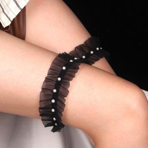 太ももに小さなパールをぐるりと散りばめて。柔らかなメッシュ生地でできたフリルは、うっすらと肌を透かし儚げな印象に。ランジェリーコーディネートのアクセントに。スカートの下からチラ見えさせても◎。