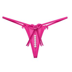 フロントはいたってシンプル。後ろを向くと、中心にバラの花&お●の割れ目に沿って大きめのパールが。長めに垂れたリボンがゆらゆら揺れて、とことんお●をデコレート。