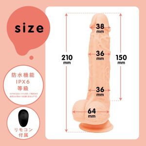 生棒感覚で超奥イキ!!突きながらかき乱す、ナマの絶頂快感が楽しめる電動ディルドです♪生々しい弾力と触り心地のぷにぷに肉棒!奥の気持ちいいとこを深突きするずんずんピストンギミックは肉壁を挟み込む心配がない安心設計。肉壁を気持ちよく擦りあげるぐるぐるビーズスピンギミックで敏感ゾーンを極み責め!吸盤でしっかり固定が可能なので普段味わえない向きからの責められ感も堪能できます!肌ざわりなめらかな高品質ソフトシリコン仕様です。本体は充電式なのでエコに使用可能。自分好みの刺激をリモコン操作で簡単に堪能できます。※本体:充電時間約150分※本体:最大連続稼働時間約100分(初期振動パターン未変更時)_IPX6等級_ピストン&ビーズスピン:8パターン振動_付属品:電池式リモコン、USBフォーンプラグ式充電ケーブル※IPX6:放水ノズルを使って噴流水を最低3分間あてる試験(浸水は不可となります)検査番号:2402564※パッケージのデザイン・サイズは予告なく変更される可能性がございます。※商品破損、部品不足等の初期不良品については、パッケージ等に記載されているメーカーのサポートセンターにご連絡ください。記載されていない場合は、当社までお問い合わせください。