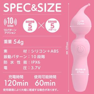 デンマとしてだけじゃなく、ピンポイント刺激も出来る大人気グッズ『ピンデン』にコンパクトで使いやすいミニタイプが登場。今回も先端にピンポイント刺激が楽しめる形状を採用。気持ちいい肌触りと柔らかさにこだわったオールシリコンボディに高品質ミドルモーターを搭載。強弱調整5段階と実用性の高い5パターンアクションの10パターン振動。軽量でコンパクトだから疲れにくく楽しめます。使いやすさと品質・性能に優れたミドルサイズデンマ。120分の充電で約60分の連続使用が可能(使用環境により大幅に増減します。)IPX6の高レベル防水性能なのでしっかり洗えるから衛生的に長くお使い頂けます。※パッケージのデザイン・サイズは予告なく変更される可能性がございます。※商品破損、部品不足等の初期不良品については、パッケージ等に記載されているメーカーのサポートセンターにご連絡ください。記載されていない場合は、当社までお問い合わせください。