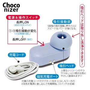 今、女性たちに大ヒット中の「ナイザー系」にさらに使いやすくなった「ちょこっとサイズ」の新・ナイザーが誕生!!クールなボディカラーの本体は、わずか6cm(天地)のポケットサイズで、お出かけにも最適です!スイッチひとつの超カンタン操作。癒しの刺激から絶頂まで、計5段階のパワー&アクション展開で貴女を満足させます◇お肌にやさしく馴染む吸引ヘッド部は取り外しができますので、使用後のお手入れもラクチンです。充電コード付き【パワー&アクション】5段階【充電時間】2時間【連続使用時間】180分※パッケージのデザイン・サイズは予告なく変更される可能性がございます。※商品破損、部品不足等の初期不良品については、パッケージ等に記載されているメーカーのサポートセンターにご連絡ください。記載されていない場合は、当社までお問い合わせください。