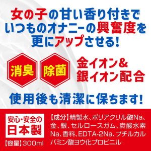 オナホメーカーmaccosJAPAN考案。嗅覚を刺激する女の子の甘い匂い付きでいつものオナニーの興奮度を更にアップさせるマスターローションの登場です。マスターローションは内部構造をリアルに感じ、継ぎ足し不要の乾きにくい中粘度のローションです。消臭、除菌効果の金イオン成分、銀イオン成分配合で使用後も清潔に保ちます!液だれ防止のねじ式ノズル採用。剥がせて安心!バレずに保存!剥がせるフィルム採用。※フィルムを剥がすと透明ボトルになります。安心・安全の国内生産原産国日本容量:300ml商品サイズ:高さ200mm×奥行50mm×横幅60mm成分:精製水、ポリアクリル酸Na、金、銀、セルロースガム、炭酸水素Na、香料、EDTA-2Na、ブチルカルバミン酸ヨウ化プロピニル※パッケージのデザイン・サイズは予告なく変更される可能性がございます。※商品破損、部品不足等の初期不良品については、パッケージ等に記載されているメーカーのサポートセンターにご連絡ください。記載されていない場合は、当社までお問い合わせください。