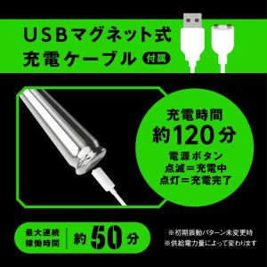 メタルの重厚快感!ツルツルの質感でするんと簡単挿入!完全防水仕様なので、使用後の丸洗いも可能で清潔に保てます。先端のボールで気持ちいいトコロをピンポイントに刺激できます!冷やっとしたメタルの質感を楽しむも良し!温めてとろける温感プレイを楽しむも良し!お好みの温度に調整できて色んなプレイが楽しめます!※本体:充電時間約140分(供給電力量によって変わります)※本体:最大連続稼働時間約50分(初期振動パターン未変更時)_完全防水IPX7等級_9パターン振動_付属品:USBマグネット式充電ケーブル検査番号:2403209※パッケージのデザイン・サイズは予告なく変更される可能性がございます。※商品破損、部品不足等の初期不良品については、パッケージ等に記載されているメーカーのサポートセンターにご連絡ください。記載されていない場合は、当社までお問い合わせください。