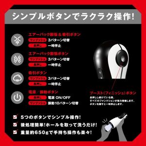 締まりの良い女性を完全再現!おまけにバキュームフェラもできる上の口も下の口も万能彼女な電動オナホ!まさに、ホンモノSEX体験!両サイドのエアーバックが膨らむことで締め上げる名器ギミック!根こそぎ吸い込むバキュームフェラに、芯まで響くヘビー級振動!絶頂を超える絶頂のブーストボタン搭載!高品質エラストマー使用。直接肌に触れるものだから、安全性と感触にこだわっています。エアーバックプレス3パターン&吸引3パターン&振動3パターン。静音設計 ≦60dBで稼働音を気にせずプレイに集中できます。■付属品:5ml ローション検査番号:2402998※パッケージのデザイン・サイズは予告なく変更される可能性がございます。※商品破損、部品不足等の初期不良品については、パッケージ等に記載されているメーカーのサポートセンターにご連絡ください。記載されていない場合は、当社までお問い合わせください。