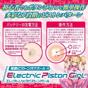 ナカが動く!電動ピストンオナホール「エレクトリックピストンガール」の登場です。これぞ攻撃的な電動乙女(オナホール)。ホール内部に「ピストン機構」があり、7パターンのピストン運動が楽しめます。自動で内部が動くことにより、挿入っぱなしで最奥に押し付ける!先端のみを刺激!など様々な楽しみ方ができます。ハリのある早熟ボディは小柄な女性の臀部を再現。見た目から興奮する「縦スジ」が肉欲と背徳感を掻き立てます。据え置きでも抱えても扱いやすいボディサイズは正常位、騎乗位、後背位などありとあらゆる体位でピストン運動を楽しめます。maccos独自素材「恋衣」を使用し、さらさらの乙女の肌触りを再現しました。背徳感のある早熟ボディのち●奥をガン突きする感覚は唯一無二の攻撃的電動オナホールです。※厚生労働省食品衛生法基準第370号準拠素材使用本体サイズ:全長245mm×横幅240mm×奥行130mm本体重量:3700グラムピストンパターン:7段階USBマグネット式充電を採用。充電時間:約100分/連続使用時間:約70分※充電環境で充電時間が変わります。※付属品USBマグネット式充電コードオリジナルローション※パッケージのデザイン・サイズは予告なく変更される可能性がございます。※商品破損、部品不足等の初期不良品については、パッケージ等に記載されているメーカーのサポートセンターにご連絡ください。記載されていない場合は、当社までお問い合わせください。