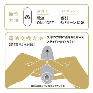 はじめてのセルフプレジャーにおすすめの吸引ローターです。吸引パターンは6パターンを搭載。お好みのパターンで楽しめます。使用後にさっと洗えて清潔を保てる防水機能付き。動作音が気にならない静音設計です。シリコン製のやわらかな吸引口なので押し当てても痛くありません。しっかり吸引してしっかり気持ちいい。使い勝手抜群の吸引ローターです。IPX6等級_6パターン吸引_静音設計≦45dB_付属品:アルカリ単4電池×2本※IPX6:放水ノズルを使って噴流水を最低3分間あてる試験(浸水は不可となります)検査番号:2405068※パッケージのデザイン・サイズは予告なく変更される可能性がございます。※商品破損、部品不足等の初期不良品については、パッケージ等に記載されているメーカーのサポートセンターにご連絡ください。記載されていない場合は、当社までお問い合わせください。