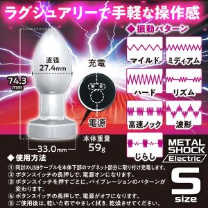 ■商品サイズ:H74.3mm×W33mm×D27.4mm~初めての方に優しく愛を込めて~初心者(入門者)に特化したをBeginner’s Loveシリーズから新作が登場!スタンダードな電動ア●ルプラグの入門商品です。S・Mのサイズ違い2種類をご用意。感じ方は人それぞれ!お好みのサイズをお選び下さい。<電動ア●ルプラグ>・メタル素材だから挿入感も◎・ラグジュアリーで手軽な操作感・スタンダードな形状だから初心者にも扱いやすい安心形状・シンプルなワンボタン式で面倒な操作は不要・ワンタッチ操作だからプレイ中も切替え楽々・振動パターンもオーソドックスな7種類を実装・あると嬉しい収納ポーチ付き■使用方法(1)同封のUSBケーブルを本体下部のマグネット部分に取り付け充電します。 (2)ボタンスイッチの長押しで、電源オンになります。(3)ボタンスイッチを押すごとに、バイブレーションのパターンが変わります。(4)ボタンスイッチの長押しで、電源がオフになります。(5)ご使用後は乾いた布でたさしく拭き、乾燥させてください。■使用上の注意・小さなお子様の手の届かないところに保管して下さい。・シンナー、アルコールなどで絶対にふかないでください。中性洗剤または専用洗剤で洗浄してください。・シリコンは外さないでください。非防水の製品の為、水周りでのご使用、水をかけたり、浸しての洗浄はしないでください。・衛生、安全の為、ご使用前にも上記方法で洗浄を行って下さい。・ご使用にならないときはコンセントから外して保管して下さい。・本体に異常を感じたり、変形・破損した場合は使用しないでください。・本商品はジョーク商品です。その他の目的で使用された場合の責任は応じかねます。■当商品はジョークグッズであり、それ以外の目的でご使用された場合は責任を負いかねます。※パッケージのデザイン・サイズは予告なく変更される可能性がございます。※商品破損、部品不足等の初期不良品については、パッケージ等に記載されているメーカーのサポートセンターにご連絡ください。記載されていない場合は、当社までお問い合わせください。