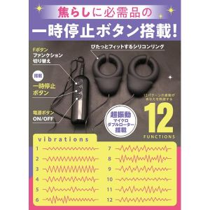 ■商品サイズ:リング:直径55mm×幅22mm×コード70cm×2個 ローター本体:90mm×30mm二つのリングが敏感部分を挟み込む充電式ハイパワーモデル焦らしに必需品の一時停止ボタン搭載!!静音&ハイパワー12パターンの振動があなたを刺激するローターの振動がダイレクトに伝わるローターと本体が離脱可能でお手入れ簡単予想できない振動パターンが予期できない快感へ誘う!!超振動マイクロダブルローター搭載ぴたっとフィットするシリコンリング超密着で振動をダイレクトに伝える電源ボタン:ON/OFFFボタン:ファンクション切り替え一時停止ボタン搭載静音設計生活防水USB充電式付属品USB充電ケーブル充電時間50分連続使用時間27分付属のUSB充電ケーブルを本体に差し込んで充電してください。※パッケージのデザイン・サイズは予告なく変更される可能性がございます。※商品破損、部品不足等の初期不良品については、パッケージ等に記載されているメーカーのサポートセンターにご連絡ください。記載されていない場合は、当社までお問い合わせください。