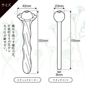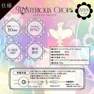 ■商品サイズ:縦120×φ15~42mmそれは、魔女の淫欲さえ満たす魔性の花々。花園に迷い込んだあなたは、官能的なその花からもう目が離せない。魔女の花園で咲き誇る、この世のものではない妖しい花々。それは女性の秘めた欲望を刺激し、優しく満たす官能的な秘具でした――。『ミステリアス・クロップス』は着脱可能なアタッチメントとシンプルなスティックローターがセットになったお手軽バイブ。アタッチメントを外せばピンポイント振動刺激に適した金属製のローターとして。アタッチメントを着ければ気軽に中イキを楽しめる細身のバイブとして。2つの用途を使い分けることで、1本で幅広い快感を味わえます。しかもローターが共通サイズなので、「ステム」「フラワー」「ミセリウム」の3種類でアタッチメントを相互に付け替え可能。色違いのパーツを自分好みに組み合わせてみましょう!気になる振動パターンは全10種類。ワンボタン切り替え式なので使用中の操作にも迷いません。さらに完全防水(IPX7)相当の防水性能を備えているので、お風呂での使用や丸洗いもOK!もちろん潮吹きで濡れても故障の心配はありません。USB充電式なので煩わしい電池交換の手間もなく、手軽さはピカイチです!静音設計なので使用中の動作音も気にならず、こっそり楽しみたいときも活躍してくれるかも。一見しただけではアダルトグッズに見えないフォルムはカモフラージュ性能もバツグン。「エッチなことはしたいけど、エッチなことをしているとは思われたくない」……そんな欲望を秘めた貴女にこそ、神秘的な魔女の秘具が力になるでしょう。●ステム螺旋を描いて絡み合う「茎」を模したアタッチメント。凹凸が●壁をなぞり、G●ポットにも刺激を与えます。サイズ:H120×φ15~42mm重量:40g総重量:95g●防水レベル:IPX7(完全防水)●箱サイズ:H180×W100×D50mm●付属品:充電用プラグ式USBケーブル(電源側:Type-A)、取扱説明書※パッケージのデザイン・サイズは予告なく変更される可能性がございます。※商品破損、部品不足等の初期不良品については、パッケージ等に記載されているメーカーのサポートセンターにご連絡ください。記載されていない場合は、当社までお問い合わせください。