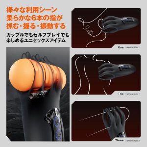 ■商品サイズ:縦150横55奥行42力強い揉み揉み機能と強力振動縦でも横でも楽しめる6本のフィンガーが強振動バイブレーションを伝って力強く揉み揉みしながら躍動します。縦に使ってフィンガーに抓まれる。横に傾けて握られながらスライドして楽しむ。カップルでもセルフプレイでも楽しめるユニセックスプレジャーアイテム。素材は柔らかな医療用高品質シリコンを採用。フィンガーモード10パターン、バイブレーションモード10パターンの全100パターンをお楽しみいただけます。<操作方法>電源ボタン長押し:電源ON/OFFモードボタン短押し:モード切替<USBマグネット充電>充電時間:120分可動時間:45分サイズ:150×50×47mm重量:190g※パッケージのデザイン・サイズは予告なく変更される可能性がございます。※商品破損、部品不足等の初期不良品については、パッケージ等に記載されているメーカーのサポートセンターにご連絡ください。記載されていない場合は、当社までお問い合わせください。