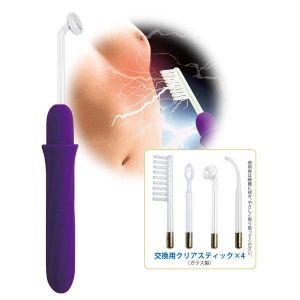 ■商品サイズ:218×45×45mm(本体のみ)新体験!快感と官能のパルスショック!4種の機能別アタッチメントから放たれる6段階パルスの 刺激的な快感に痺れる!使用箇所の説明とご注意■敏感度の高い部分■中程度の敏感度の高い部分■敏感度の低い部位《使ってはいけない部分》敏感な部位への接触はおやめください。また、医療機器(ペースメーカーなど)をご使用の方、妊娠中の方、高血圧、心臓病、 その他の特別な疾患をお持ちの方は、本製品を使用しないでください。使用中に異常を感じた場合は、直ちに使用を中止してください。《使い方》ご使用前に、水性潤滑剤で肌を湿らせるか、ウェットティッシュで肌の表面を時々拭いてください。 (乾燥した肌は抵抗力が高くなるため。) 用意ができたら、クリアスティックを本体に差し込んで、電源スイッチを長押しし、本体をスタンバイ状態にします。その後、+と-で、高周波6段階の強弱を調整しながら、パルスの刺激を操作します。やけどを防ぐため先端を同じ個所に長時間当て続けず、先端をちょんちょんと肌に当てるクイックコンタクト法、先端を肌にあて、スッと撫でるスライディングコンタクト法の併用をおすすめします。終了するには再度電源スイッチを長押しし、本体をシャットダウンさせてください。※1…この様なパルストイを初めてご使用になる場合は、まず最弱パルスを手の皮膚でテストしてください。※2…腕、太もも、お●など、敏感でない部位は、最小パワーから刺激を始め、じょじょにパルスの強度を調整してください。《本体の充電》■付属の充電ケーブルのピン先を本体底の小穴に差しこみ、もう一方はスマホ充電器やPCなどのUSB口(Type-A)に差し込むと 充電を開始します。充電中は電源スイッチが点滅、満電になると点灯に変わります。■充電時間:約90分■連続使用時間:約60分《本体の取り扱いについて》クリアスティックはガラス製ですので、取り扱いにはご注意ください。通電中は、感電を防ぐため、通電部周辺に触れないでください。ご使用の際は、適切なパルスの強度を選択し、怪我をしないようご注意ください。※パッケージのデザイン・サイズは予告なく変更される可能性がございます。※商品破損、部品不足等の初期不良品については、パッケージ等に記載されているメーカーのサポートセンターにご連絡ください。記載されていない場合は、当社までお問い合わせください。