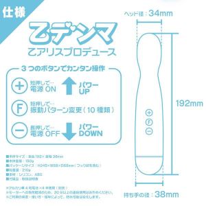 人気ギャル女優【乙アリス】がお気に入りの「ターコイズブルー」のデンマが登場!中イキ&外イキどちらもイケる二刀流! すぐ楽しめる乾電池タイプなのに安心の完全防水!デンマ界に衝撃をもたらした「ピンクデンマ アクア」に、いまをときめく人気女優【乙アリス】カラーが登場!【乙アリス】と言えば、AV業界きってのデンマ大好き女優。その濃厚さは、彼女の出演作にワイルドワンのデンマがほぼすべて網羅されているほどです。ダイナミックなボディラインを、あらぶったデンマが蹂躙するシーンは、まさに映えの極致。彼女のエンドレスな腰づかいと、激しい潮吹きに最もふさわしいのは、この完全防水デンマ以外にありません。●完全防水(IPX8)!電池ボックスに独自の水密構造を施し、やりすぎ完全防水(IPX8)を実現!防水性の高い高級シリコン素材で100%フルコーティングしているので、手触りもさらっと滑らか。濡れやすい人、ローション多めの人に安心なのはもちろん、おフロでも使えて、丸洗いだってOK!おフロで楽しみたい! 中イキしてみたい(させてみたい)!そんな男女の夢を叶える、史上最高峰のハイスペックデンマです。●中でも外でもイキたいあなたに!デンマなのに挿入できちゃう! つるんとしたスリムヘッドが、性感帯をピンポイントで刺激し、挿入プレイも!外でも中でもイキたい人にピッタリです。「ピンクデンマ1」のように31mm規格のアタッチメントをセットすれば、さらに幅広いプレイが。スリムヘッドで、中イキ派&外イキ派、どちらもイカせる二刀流です。●即始動! 充電不要!買い置きの電池ですぐに使え、人をコードと充電のない世界に導きます。どんどんグッズが充電式にシフトするなか、ワイルドワンは電池派にも寄り添いつづけます。●120種類の快感バイブレーション!小さなボディに、小型強力モーターを搭載し、微弱→最強までのスピード・レンジは、実に約6,000rpm。あの「ピンクデンマ超(スーパー)」をも凌駕する振れ幅で、ソフトからハードまでを存分に体感できます。軽くボタンを連打するだけで、くすぐるようなソフト振動が、すぐさまマックス激震モードに!●電源 単4形アルカリ乾電池×4本(別売)●本体 全長:192mm、ヘッド径:34mm、持ち手太さ:38mm 重量:150g(乾電池を除く) 素材:シリコン(コーティング)、ABS●パッケージ サイズ:H245×W68×D68mm(フック部を含む) 素材:紙+PETトレイ●付属品 取扱説明書●総重量:210g[ピンクデンマ]はワイルドワンの登録商標です。登録商標第5708048号※モーターへの負荷軽減のため、20分以上の連続使用はおやめください。※防水性能は、ご利用の頻度・使い方・経年によって変化します。※ダイソー「アルカリ乾電池 単4形」(JAN:4549131664157)など、サイズが短めの乾電池では動作しない場合があります。※パッケージのデザイン・サイズは予告なく変更される可能性がございます。※商品破損、部品不足等の初期不良品については、パッケージ等に記載されているメーカーのサポートセンターにご連絡ください。記載されていない場合は、当社までお問い合わせください。