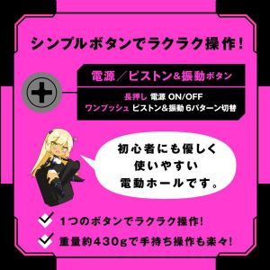 ■商品サイズ:220*110*85グイングインしなる手コキ仕様のハイクオリティ電動オナホ!好みのスピードとリズムで楽しめるピストン振動6パターン!取っ手を持って振ることで、しなる時に発生する反動力がパワフルで高速な手コキを妄想させます。普通の手コキでは絶対無理なグイングインとしなる躍動感を体験してください。1つのボタンでラクラク操作!重量約430gで手持ち操作も楽々!ホールを取って洗うだけなので、後処理簡単!初心者にも優しく使いやすい電動ホールです。ホール部分はさらっとなめらか人肌感触。弾力性抜群で激しくしても壊れにくい耐久力があります。直接肌に触れるものだから、安全性と感触にこだわり高品質ソフトシリコンを使用しています。防水機能IPX0。静音設計 ≦55dB。充電用USBケーブル付属。パッケージイラスト:maruku検査番号:2504845※パッケージのデザイン・サイズは予告なく変更される可能性がございます。※商品破損、部品不足等の初期不良品については、パッケージ等に記載されているメーカーのサポートセンターにご連絡ください。記載されていない場合は、当社までお問い合わせください。