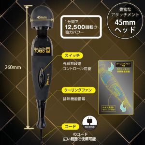 ■商品サイズ:縦260×横45×奥行45最上級Neo Luciferが満を持して登場――……!12,500回転の大迫力!クーリングファン内蔵で長持ち&パワフルに!NeoLuciferTURBOから、耐久性もよりUPしました。繊細から力強い振動まで可能にする独自の高性能モーターも内蔵。強弱無段階コントロールスイッチで、振動のパワーを自由にコントロール可能。クーリングファンにより、長時間でも熱くなりにくい設計になりました。扱いやすい小型ヘッド。溝のない滑らかなシリコン製にすることでお手入れがしやすくなっております。直径45mmヘッド対応のアタッチメントの使用可能。様々な刺激を楽しめます。ボディにも手触りの良いシリコン加工を採用。細身の設計で、手の小さめな方でも楽に使い続けられます。電源は、3.5mの超ロングコード!幅広い場所でのご使用できます。※パッケージのデザイン・サイズは予告なく変更される可能性がございます。※商品破損、部品不足等の初期不良品については、パッケージ等に記載されているメーカーのサポートセンターにご連絡ください。記載されていない場合は、当社までお問い合わせください。