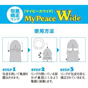 「マイピースワイド」は、男性のペ○スの悩みを解消するグッズだよ!仮性包○をカバーして、リング幅を3倍もワイドにしたから、徐々に剥きグセをつけられるんだ!リング内側の傾き加工で、ジャストフィットして快適に使えるよ!アレルギー試験済みの安心素材を使って、洗って保管して大丈夫!30代以上の方に人気の商品だから、昼用にオススメだよ!